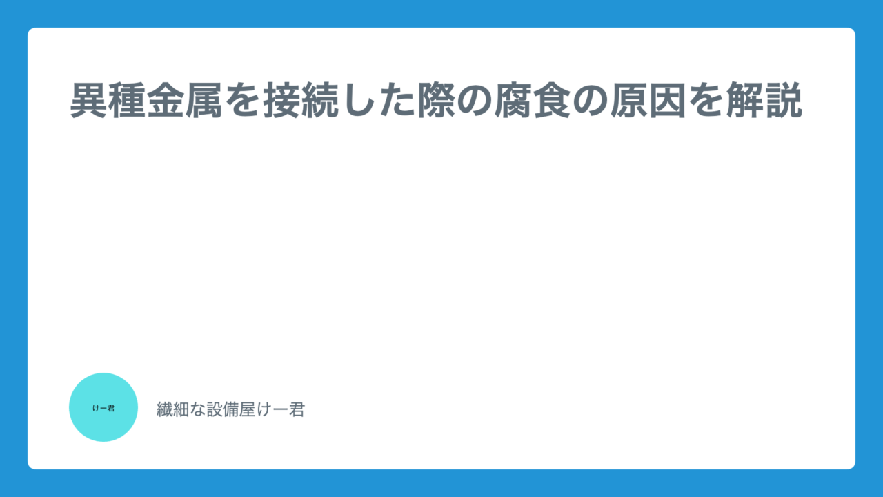 異種金属を適切な方法で接続しない場合なぜ腐食するのか解説していきたいと思います