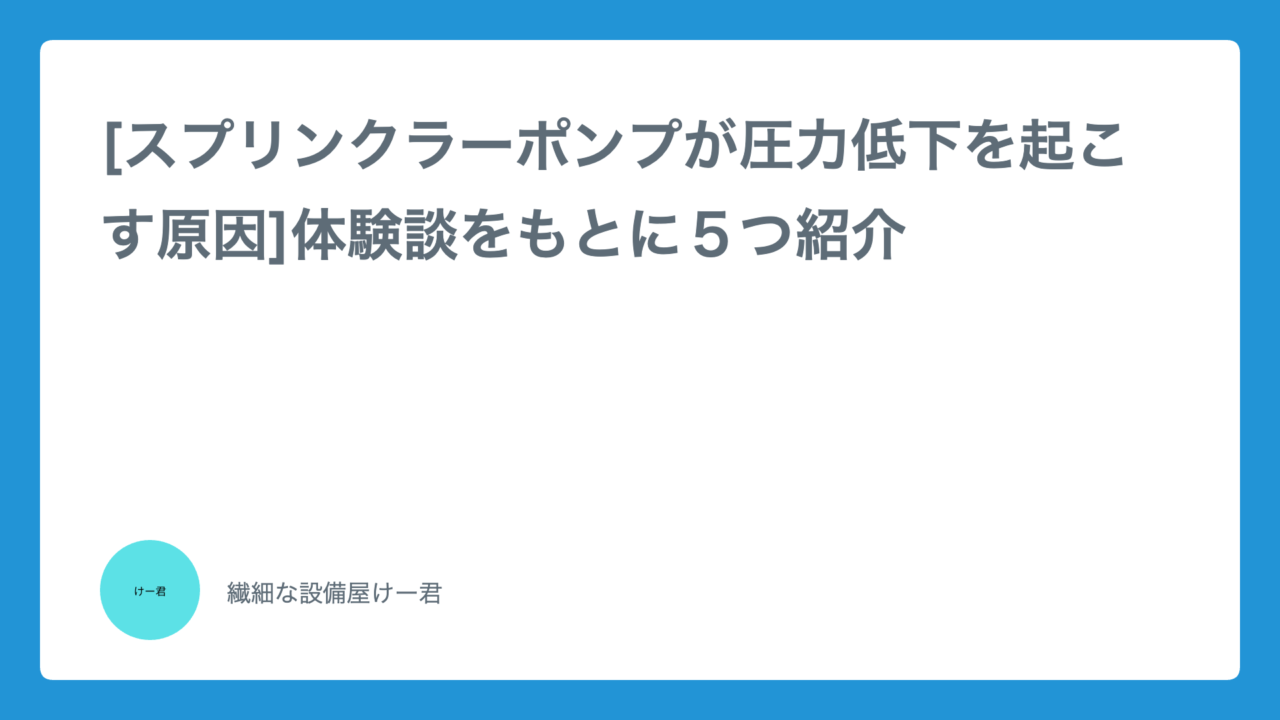 「ポンプを入れ替えを行う為に水を抜いた」「ヘッドの交換を行う為に水を抜いた」などの「水を抜く作業」を行なった後に圧力低下が発生した場合は配管自体の漏水の可能性は低いと思います。